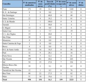 O Ministério da Saúde e da Segurança Social vem, por este meio, informar sobre os resultados das amostras processadas nos laboratórios no dia 19 de abril de 2021, os casos recuperados, o número de casos ativos e de óbitos. Resumindo, do total de 958 resultados recebidos, somam-se 154 casos novos positivos e 159 recuperados (Praia … Continue a ler Boletim Epidemiológico de 20 de abril de 2021